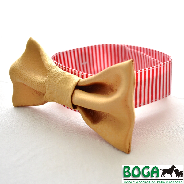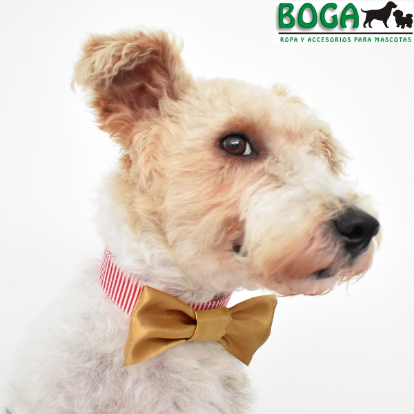 Lindo y elegante collar de tela, ideal para las celebraciones navideñas de Diciembre. Collar a rayas rojo y blanco con una corbatita michi dorada. Disponibles en 4 tallas, ajustables con 3 botones a lo largo para que se acomoden mejor al cuello de tu engreído. Medidas referenciales: 'S' para cuellos de 17 a 27cm, 'M' de 24 a 34cm, 'L' de 33 a 46cm, 'XL' de 44 a 56cm.